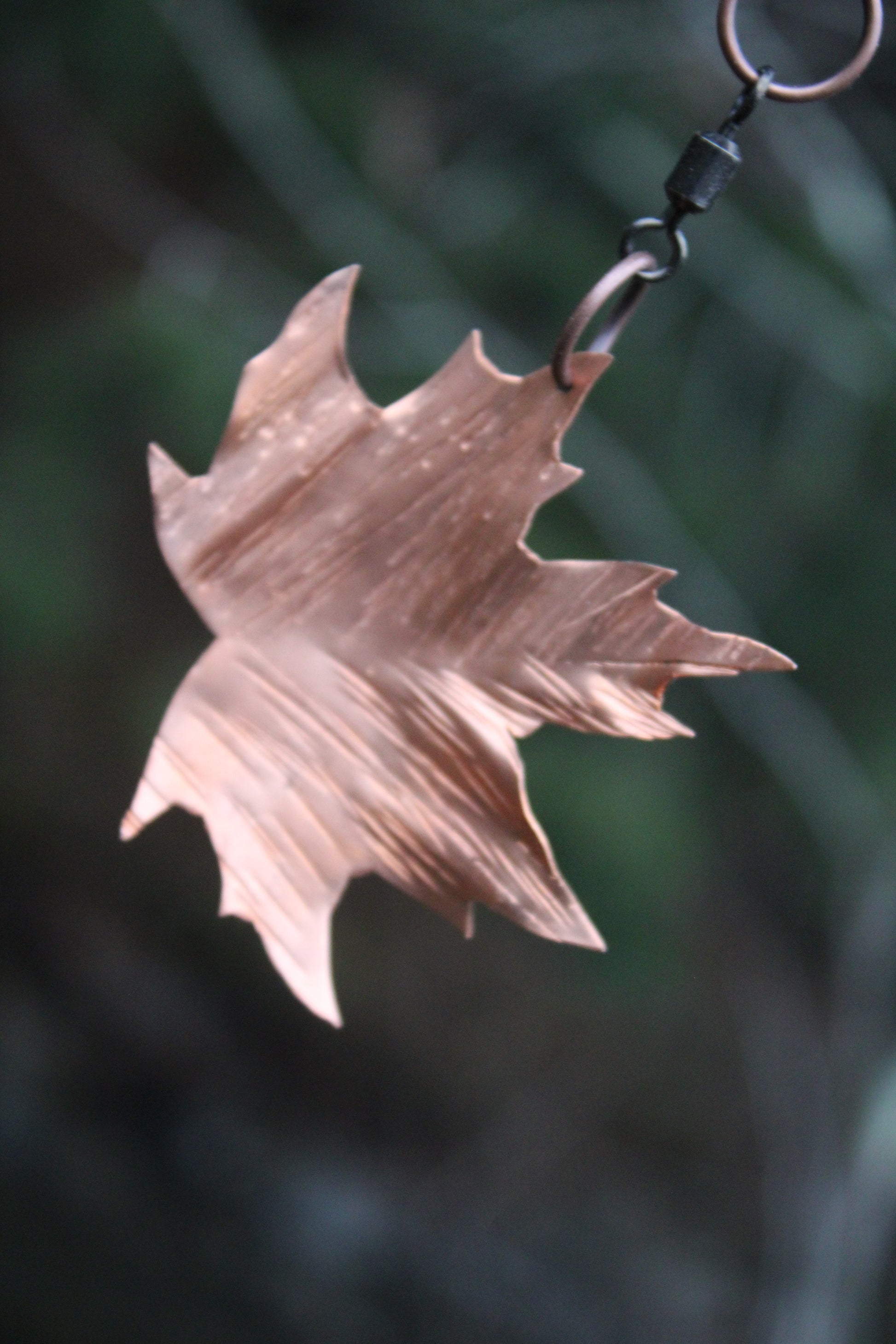 The Dancing Maple Breeze Spinner brings motion, color, and rustic beauty to your outdoor space. Standing 32" tall, this handcrafted copper wind spinner features three textured and hand-formed maple leaves that twirl gracefully in the breeze. Each leaf catches the light with a warm, natural shimmer, creating a mesmerizing display of movement and artistry.