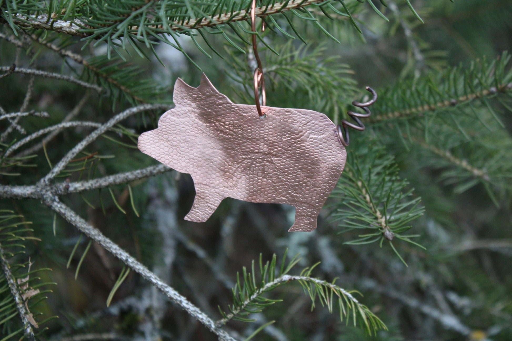 Meet Penny the Copper Pig Ornament — a little rustic charm with a whole lot of personality! Measuring 2.5" x 3.5", this handcrafted copper pig features a playful textured finish and an adorable twirly wire tail that’s sure to make you smile. Perfect for your tree, kitchen décor, or as a gift for any farm animal fan, Penny adds a warm, whimsical touch wherever she lands. Each one is individually made, giving every pig its own bit of farmhouse flair and unique character.